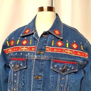 Vintage Gepetto 90s y2k Southwest Aztec Thunderbird Trucker Jean Jacket Lg