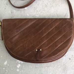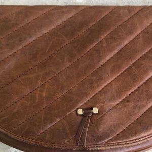I am not sure of the proper spelling of the name on this bag, Check out the picture. It’s a nice vintage piece, but does need some reconditioning and has a small tear on the second interior compartment. Measuring across the top is 10.5” x 7” with an adjustable strap