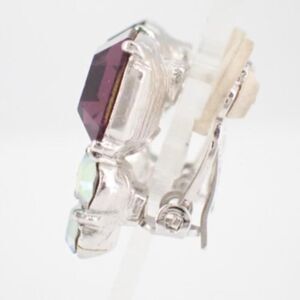 Elevate your vintage jewelry collection with these authentic Givenchy clip-on earrings. Designed with a stunning emerald-cut amethyst crystal and accented by three shimmering aurora borealis round stones, these earrings radiate glamour and sophistication.