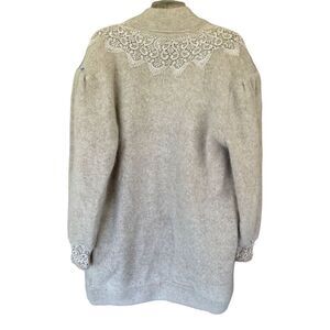 Vintage Gizel Sweater Coat White Beaded Angora Rabbit Hair Cardigan L/XL New