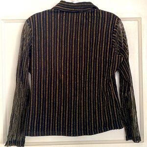 Vintage Glam Gold Stripe Ruffle Front Sheer Button Down