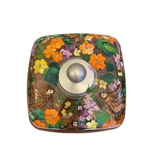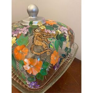 Vintage Glass Cake Stand Handpainted Monkey Florida Sunroom