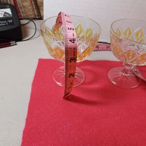 Vintage Glass Dessert cups (1 flawed) Diamond Yellow Design Cottagecore Grandmac