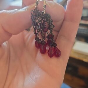 Vintage red dangle earings, Gold filled, approximately 2" long