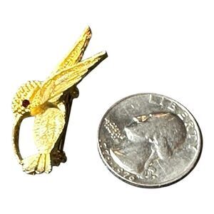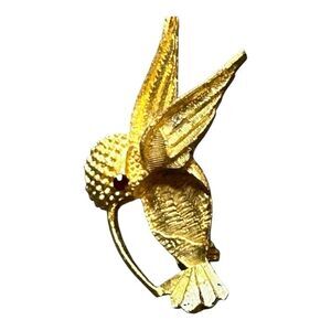 Vintage Elegant gold hummingbird brooch. Intricate detailing. Perfect for any outfit. Bag charm vest