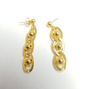 Vintage Gold Tone Link Chain Dangle Earrings, Retro Design, Estate