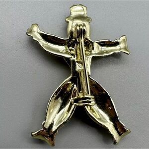 Vintage Gold Tone Pearl Rhinestone Green Enamel Clown Brooch Pin, 1.5"