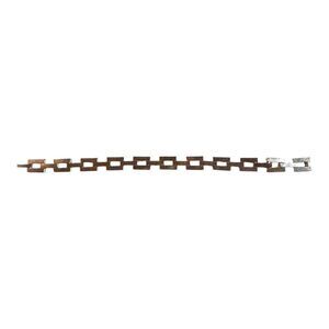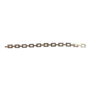 This gold tone bracelet features a vintage design with rectangular links, offering a sophisticated touch to any attire. It measures approximately 8 inches in length, making it a perfect fit for most wrists. The elegant link pattern adds a timeless appeal, ideal for adding a touch of class.
