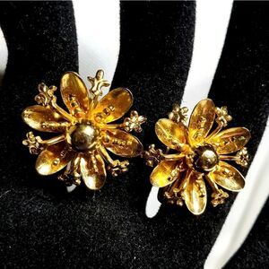 Stunning vintage gold starburst and flower clip on earrings