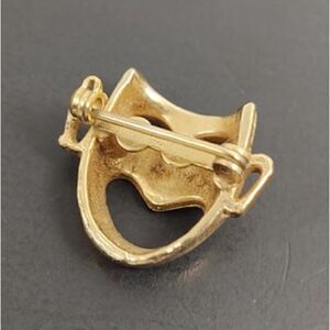 Vintage Gold-tone metal drama theater mask brooch/pin. Unisex Pin back closure with safety catch.
