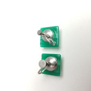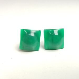 Vintage Green Square Clip On Earrings, Screw Backs, Retro Plastic, Estate
