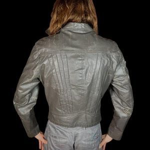 Vintage Grey Moto Punk Leather Biker Jacket Full Zip