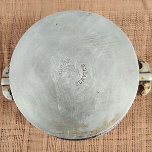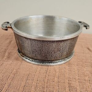 It measures about 10" across from edge of handle edge of handle and 3" deep. The opening is about 7.5".