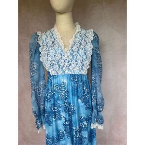 🩵 Stunning Gunne Sax style maxi dress with lace accents