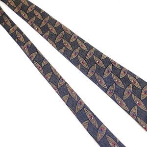 Guy Laroche Paris Monsieur tan and navy abstract paisley print in excellent preowned condition with no visible signs of wear. Length 57", width (at the widest point) 4".