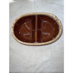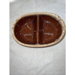 Vintage Hall USA Brown Drip Oven-Proof Divided Serving Dish Bowl 11"