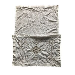 Vintage Hand Embroidered Pillowcase White Cut Work 28” x 18”