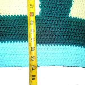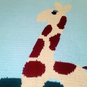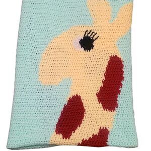 Vintage Hand Knit Crochet GIRAFFE Blanket Green Yellow Brown 54" x 41".