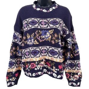 Vintage Hand Knit Jennifer Reed Floral Print Sweater