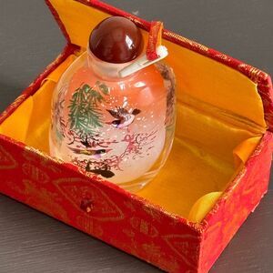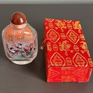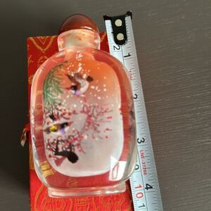 Beautiful hand-painted glass bottle featuring birds and floral designs. Vibrant colors make it a unique piece.