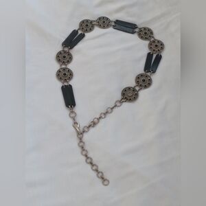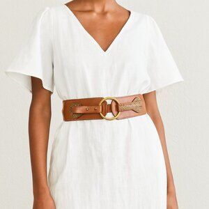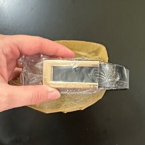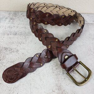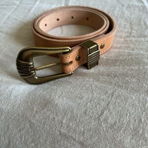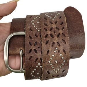 Enhance your outfit with this elegant brown belt featuring a unique geometric buckle / accent.