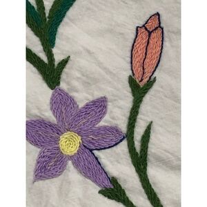 Vintage Hand Embroigered Tablecloth Floral 60” x 62”