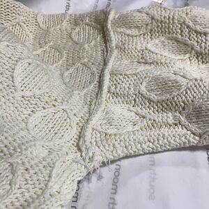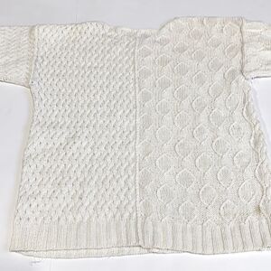 A fabulous Classic favorite boyfriend style chunky knit sweater with opposing knit on either side . A tad Oversized perfect for lounging abs chilly dog walks. This piece is well loved with a couple of flaws as shown in the photos but it has great vintage character . * Please see ALL photos for signs of wear.