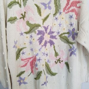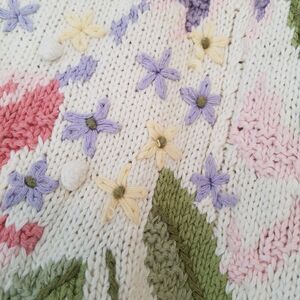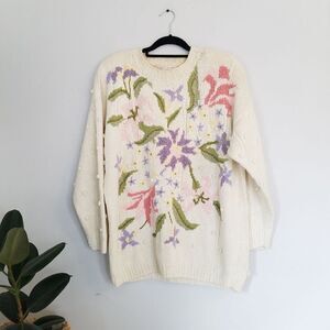 Vintage Hand Knitted Venezia Chunky Pastel Floral Oversized Grannycore Sweater