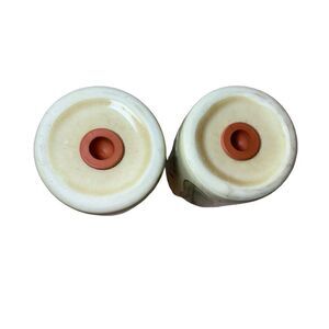 Good condition: No chips or cracks, rubber stoppers still in place.