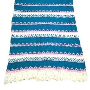 Vintage Handcrafted 80s Dark Teal/Pink Grandma Crochet Knit Afghan Throw Blanket