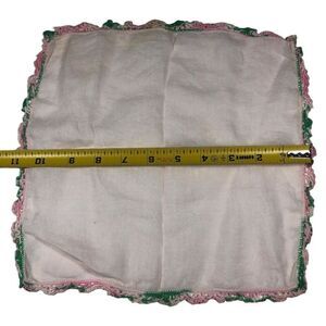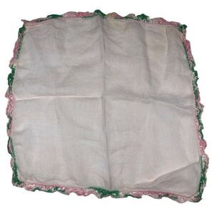 Vintage Handkerchief Hanky With Ombre Pink Green Crochet Border Pocket Scarf
