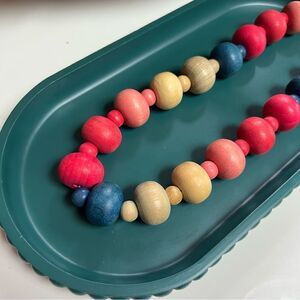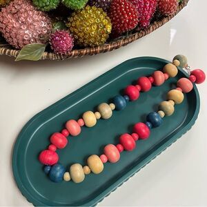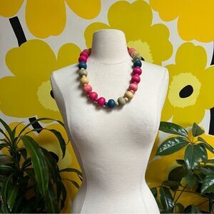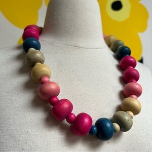 Vintage Handmade Oversized Chunky Boho Rainbow Wooden Bead Statement Necklace