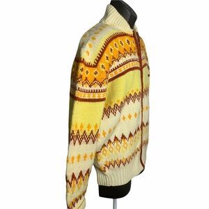 Vintage Handmade Wool Sweater Jacket M Yellow Cable Knit Metal Zip Fair Isle