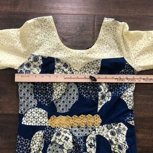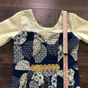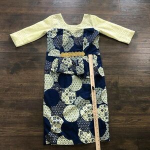 Vintage Handmade Blue Cream Peplum Dress Jet