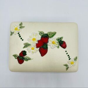 Vintage Handmade Ceramic Strawberry Trinket Box