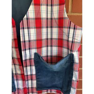 Plaid fabric feels like a cotton blue, the blue fabric feels like corduroy