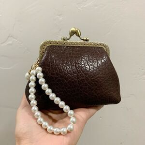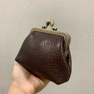 Vintage style. It's very cute and exquisite small clutch/wristlet, completely hand sewn and crafted. Made from genuine premium cowhide leather with kisslock. Includes a chain, can hold cosmetics, keys, bank cards, coins.