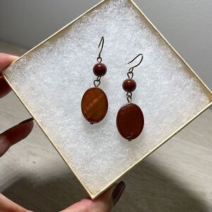 Description: Cute dangling earrings. Burnt red color. Simple and vintage looking.