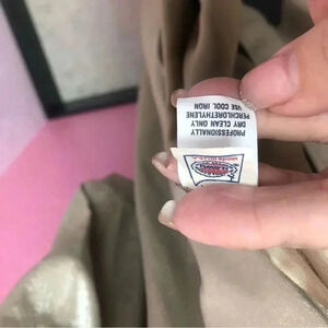 Initials on brand tag, no size tag and 2 small brown spots on the upper back of coat.