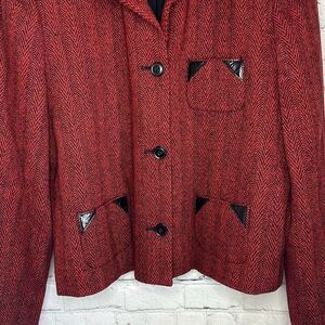Vintage Harve Bernard Red Black Wool Blazer Made in Ukraine size 10