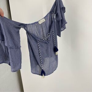 Vintage Havana Women’s Off the Shoulder Blue Ruffle Blouse size S