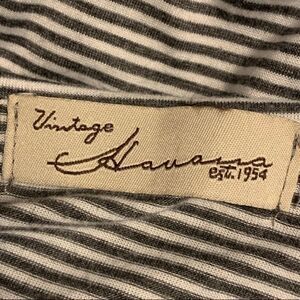 Vintage Havana gray striped drop waist dress with breast pocket and waist tie. Bust 38” and length 34”.