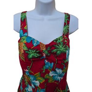 Vintage Hawaiian Floral Dress Pineapple Print Sweetheart Neckline fairycore