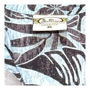 Vintage Hawaiian Print Short Sleeve Button-Up Shirt XL Light Blue Go Barefoot