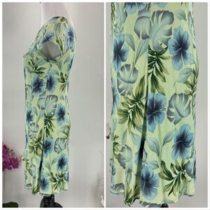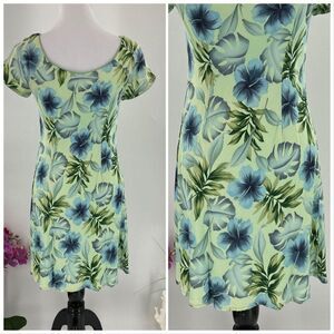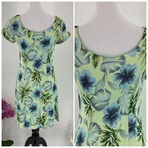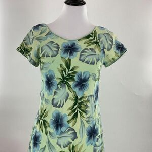 Iolani Hibiscus Monstera Green & Blue Floral Design Aloha Friday Apparel