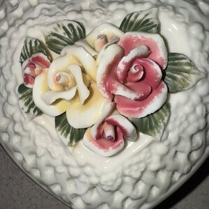 VintageHeart Shaped Ceramic Trinket Box with Rose Lid ♥️♥️♥️