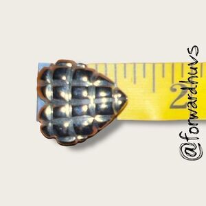 • Design: Heart shape with textured, woven-style surface