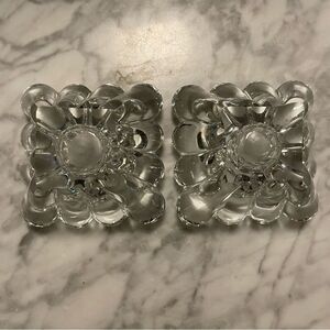 Vintage Heisey Glass Clear Crystolite Square Flower Candlesticks
