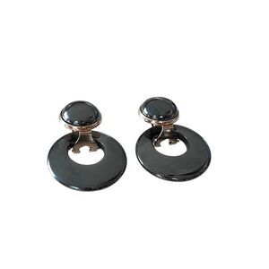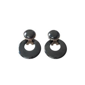 Vintage Metal Hematite Door Knocker Post Stud Earrings, in EUC