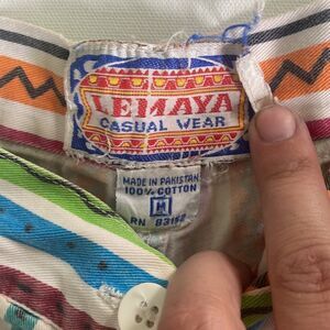 Vintage High Rise Button Fly Striped Cotton Shorts